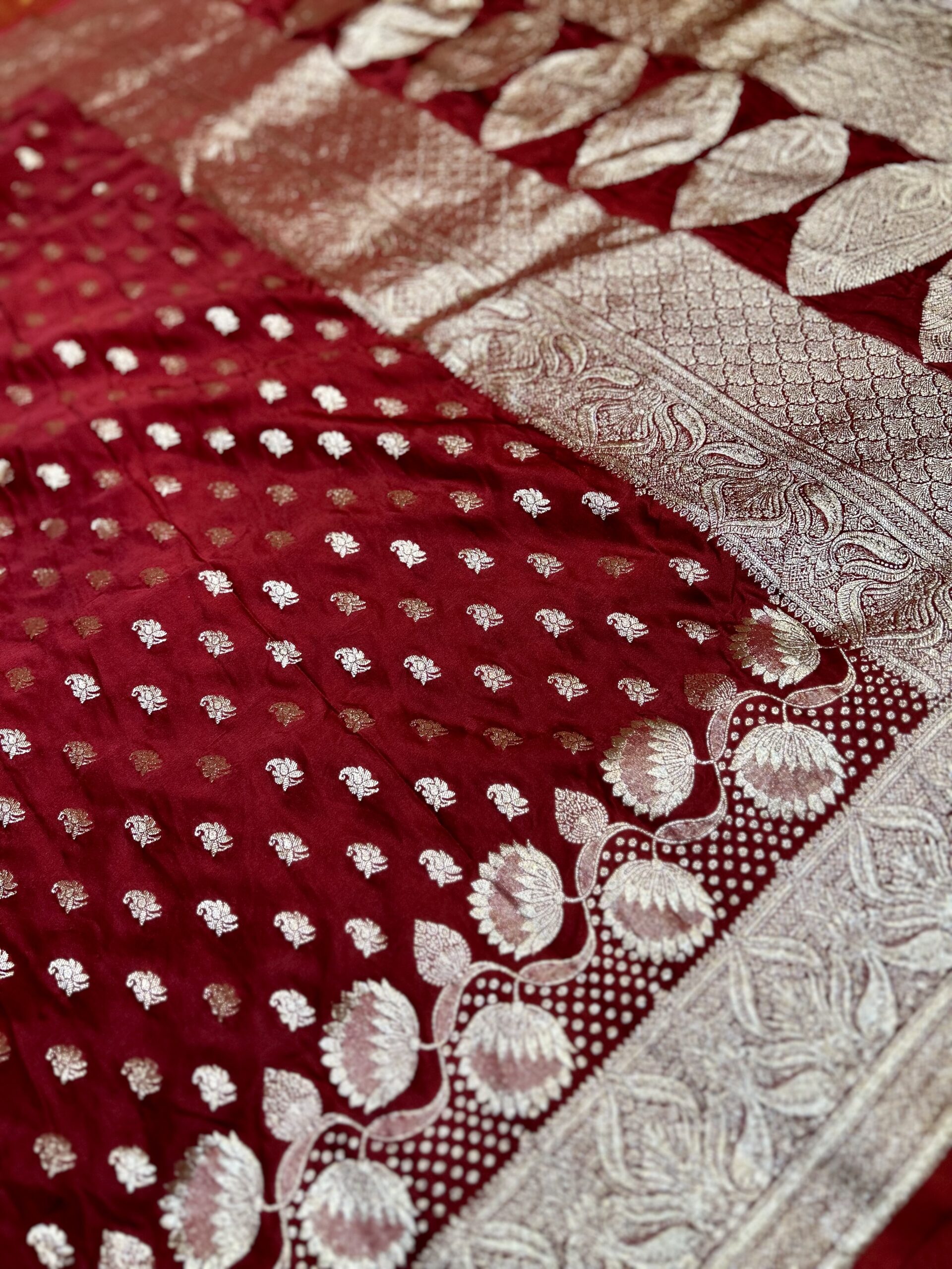An exquisite Pista Green Katan Silk saree with silver zari and all over buta work.